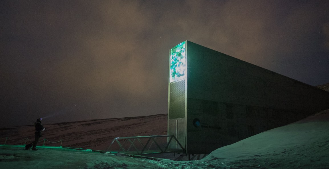 The Svalbard Global Seed Vault, also called The Doomsday Seed Vault, is a seed bank which is located in Norway. It is in within the Arctic Circle in close proximity to The North Pole, and contains duplicates of a wide variety of plant seeds that are held in other gene banks worldwide. The main purpose of its creation was to preserve these seeds, so that they will be available in the event of a global crisis. The seed bank is 120m inside a sandstone mountain on Spitsbergen Island, and the seeds within it are packed in special three-ply foil packets. These are then heat sealed to ensure that no moisture can get in. The vault contains approximately 1.5 million species of agricultural crops, which it is expected to keep unharmed for hundreds (or thousands) of years.
